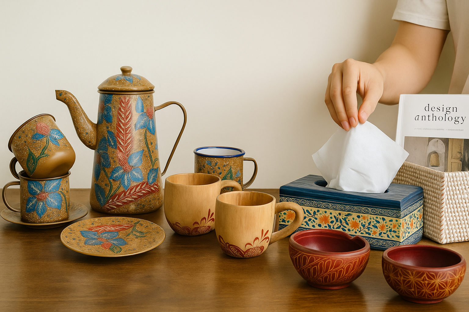 Sechseckige Holz-Obstschale – Moderne Balinesische Schnitzkunst, Nachhaltiges Handwerksstück für den Esstisch